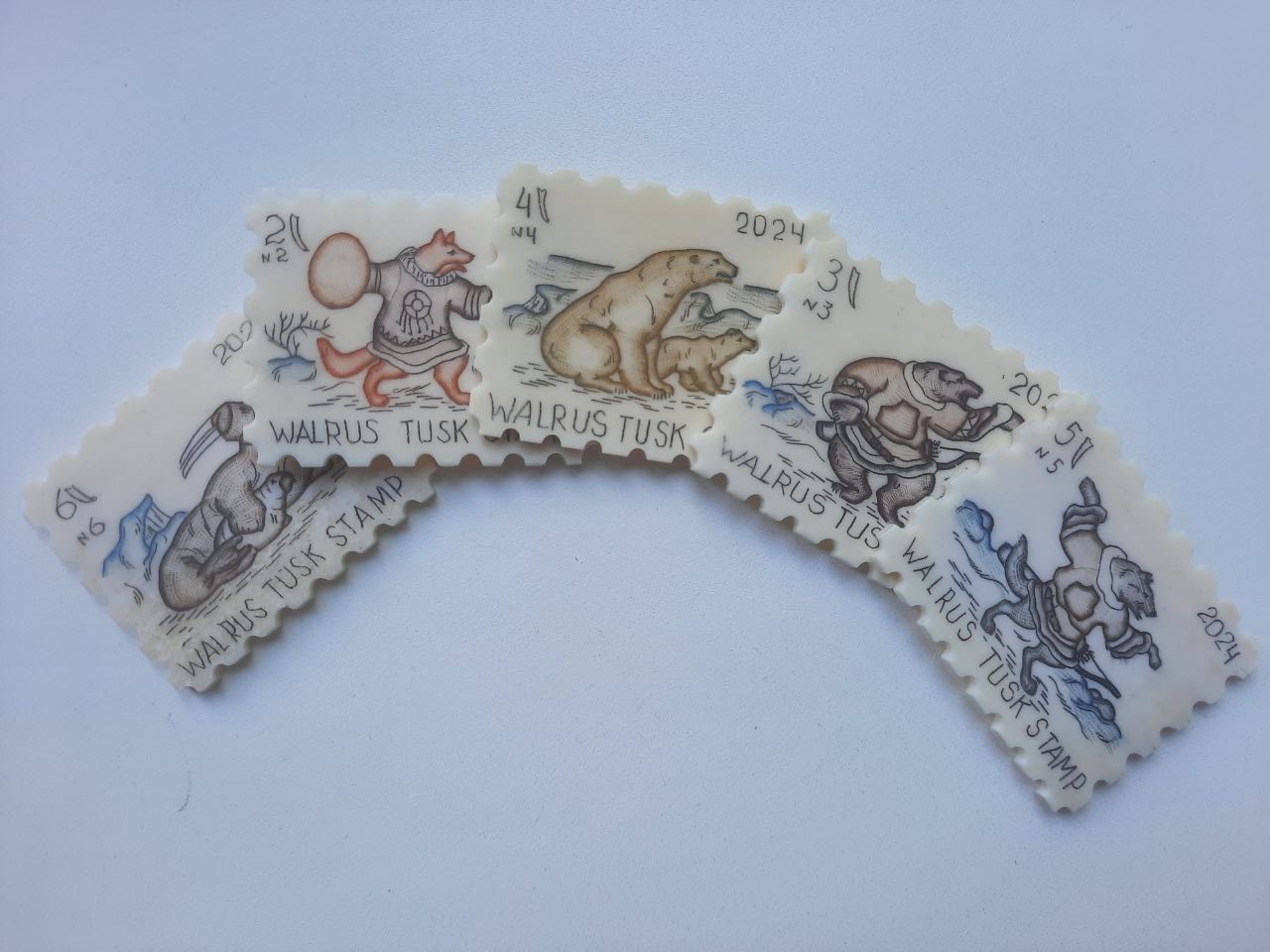 Вышла в свет коллекция первых в мире марок из бивня моржа, созданных Чукотским косторезом-гравером из Уэлена.